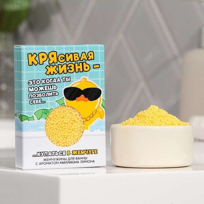 Объем упаковки составляет 100 г, что позволяет использовать жемчуг несколько раз. Упаковка оформлена в ярких цветах с изображением утенка в солнцезащитных очках, что делает ее отличным подарком для друзей и близких. Срок годности продукта — 2 года с момента изготовления, что гарантирует его свежесть и качество.
