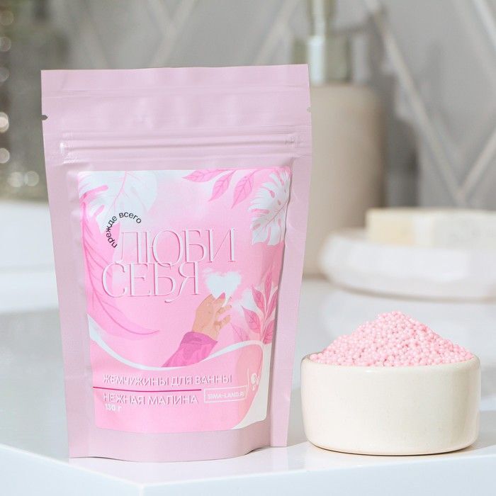 Жемчуг для ванны с эффектом отдыха, аромат малины, 130 г, розовые гранулы, смягчает кожу, легкий уход