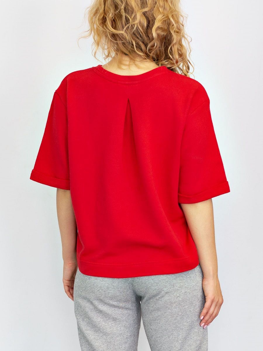 Размер: L; Цвет: красный; Материал: 100% хлопок. Футболка имеет короткие рукава и округлый вырез горловины, а также встречную складку на спинке, что добавляет ей оригинальности. Не упустите возможность обновить свой гардероб стильной и удобной футболкой!