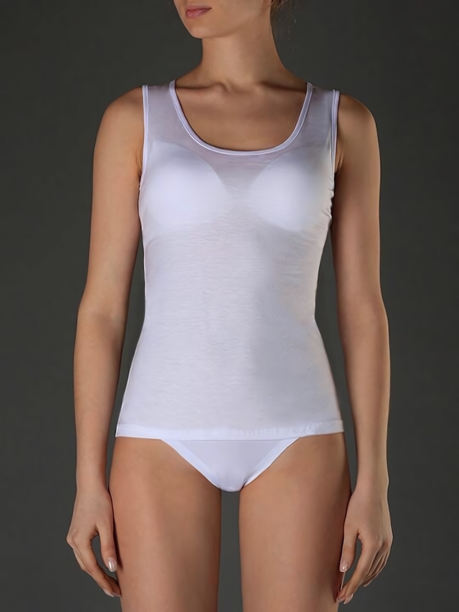 Мягкая майка из инновационного материала лиоцелл создаёт ощущение прохлады в жару и сохраняет тепло в прохладную погоду. Широкие бретели обеспечивают надёжную поддержку без врезания в кожу.