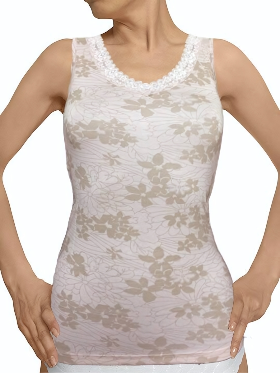 Женская майка из лиоцелла с цветочным рисунком и кружевом, бежевая, размер XL
