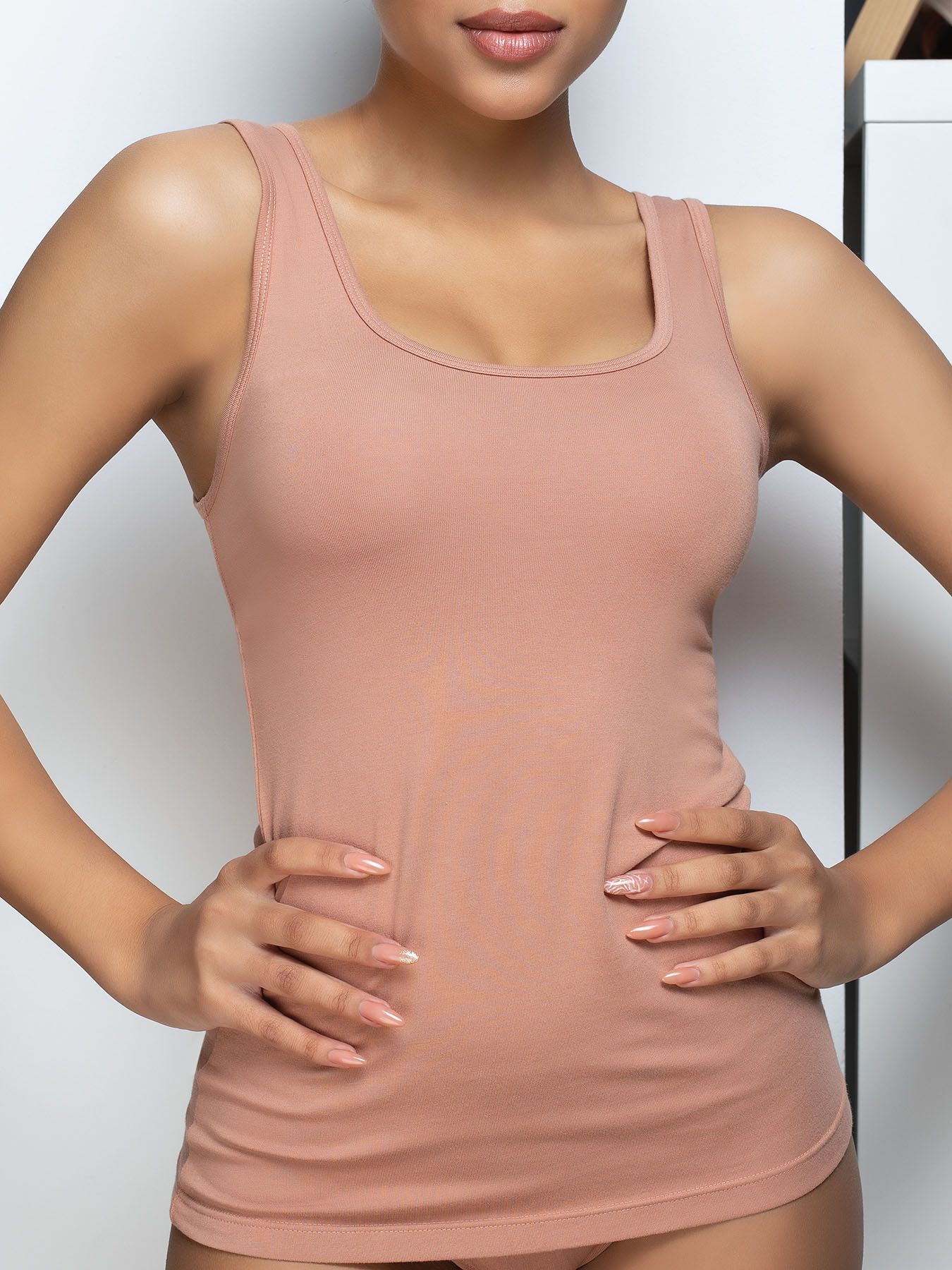 Майка женская с широкими бретелями, размер XL, цвет бежевый, модал/хлопок