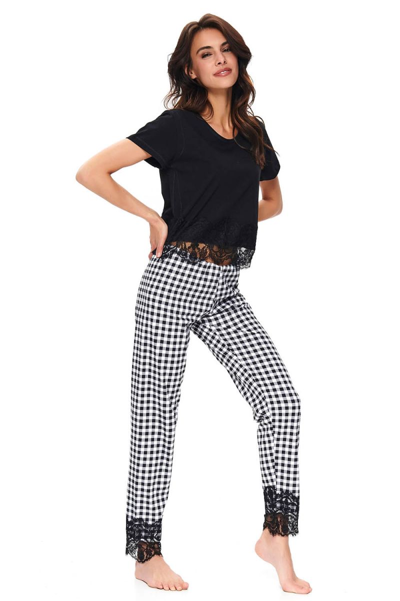 Пижама женская Doctor Nap, топ с кружевом и клетчатые брюки, черный с белым, размер L, 100% хлопок