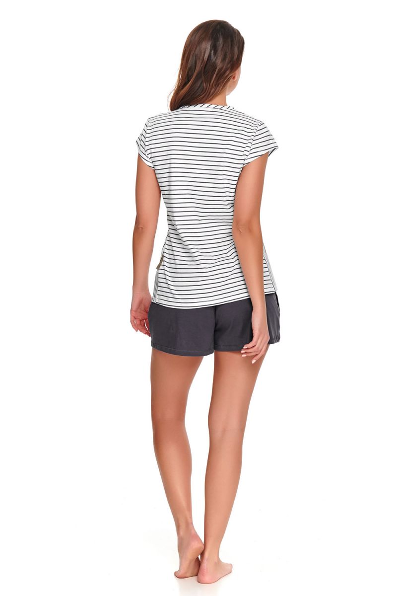 Пижама представлена в нежной комбинации белого и серого цветов, которая легко впишется в любой домашний гардероб. Комплект состоит из футболки и шортиков. Для сохранения первоначального вида и мягкости материала рекомендуется стирка при щадящем режиме согласно инструкции на ярлыке изделия.