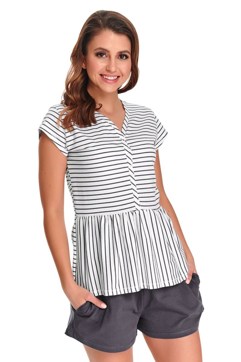 Пижама женская Doctor Nap, футболка с V-вырезом и шорты с карманами, 100% хлопок, размер XL, цвет белый с серым