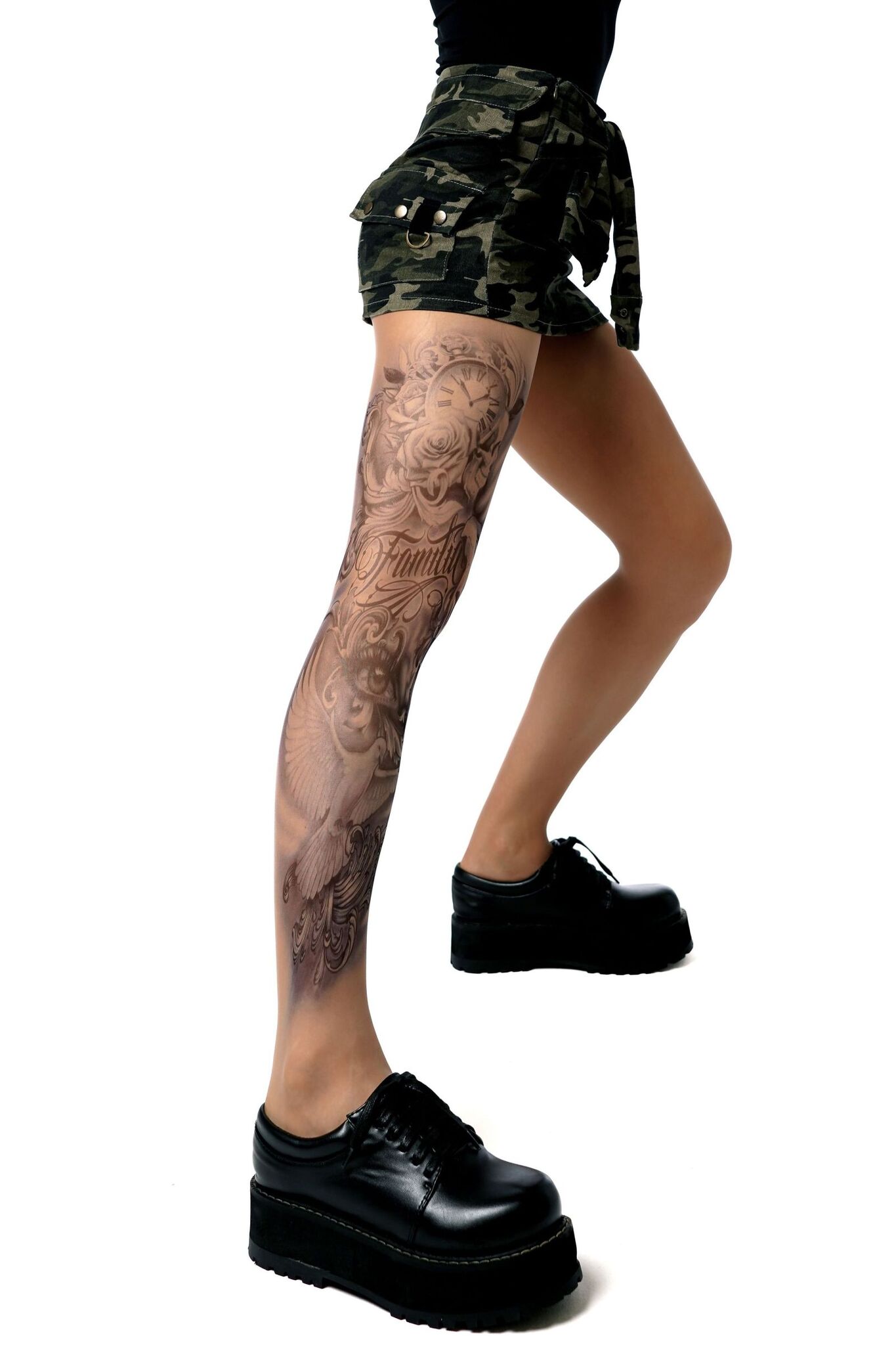 Эффектные колготки с детализированным принтом «Familia» создают иллюзию настоящей татуировки, подчеркивая индивидуальность и добавляя дерзости вашему образу. Идеальный выбор для тех, кто хочет экспериментировать со стилем без постоянных обязательств.