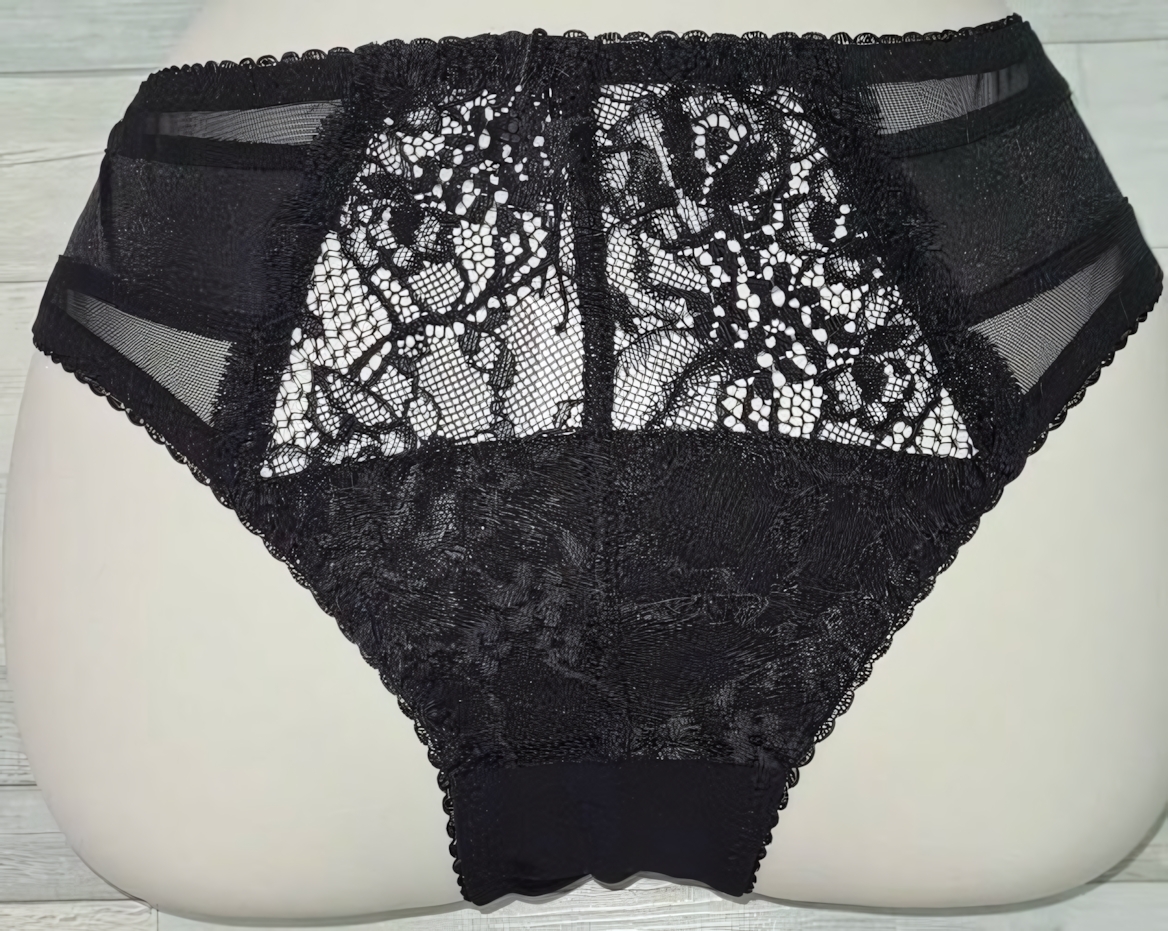 Состав: 70% полиамид (кружево), 20% эластан (сетчатые вставки), 10% хлопок (ластовица). Черный цвет универсально сочетается с любым нижним бельем. Европейский размер 4X соответствует обхвату талии 106-110 см.