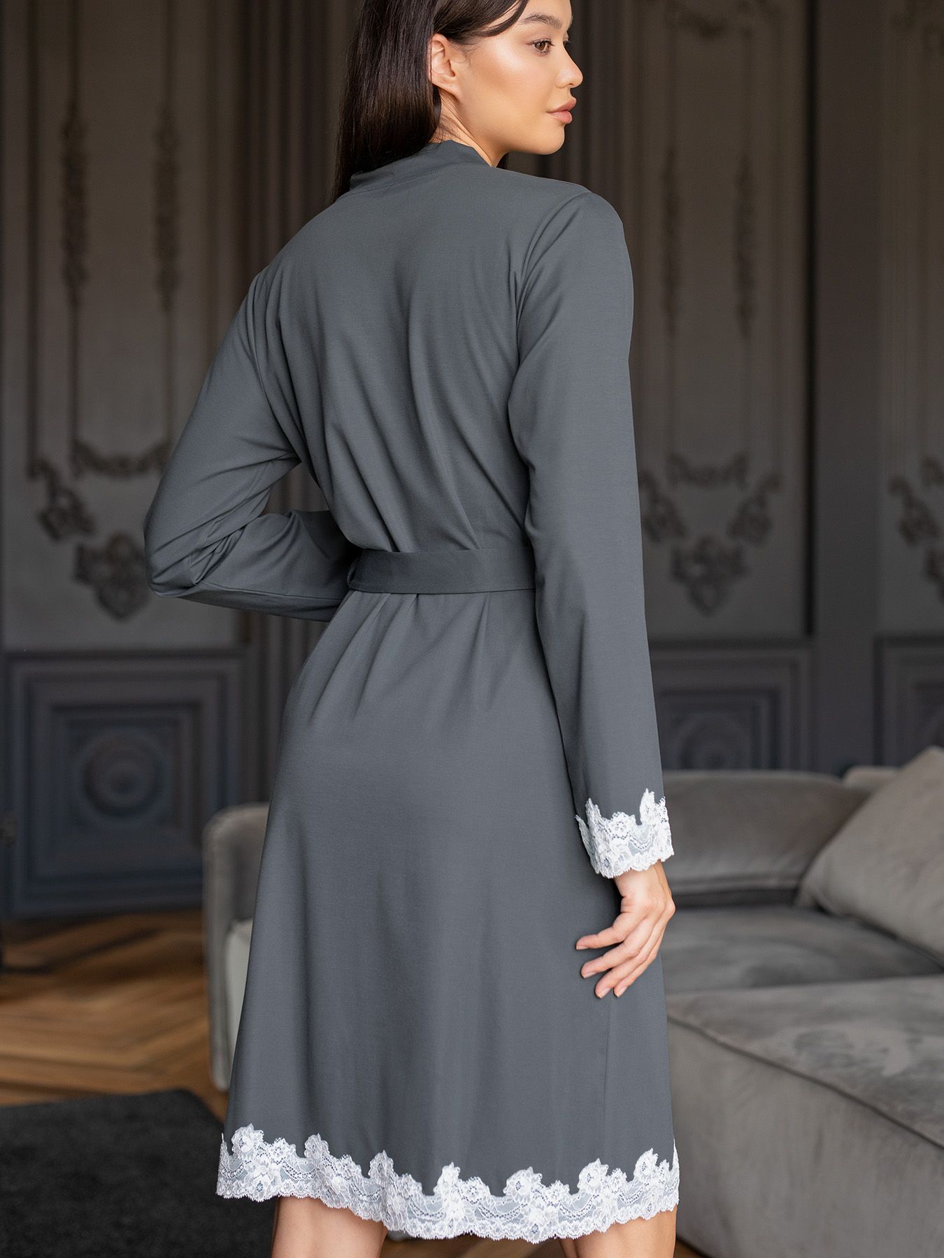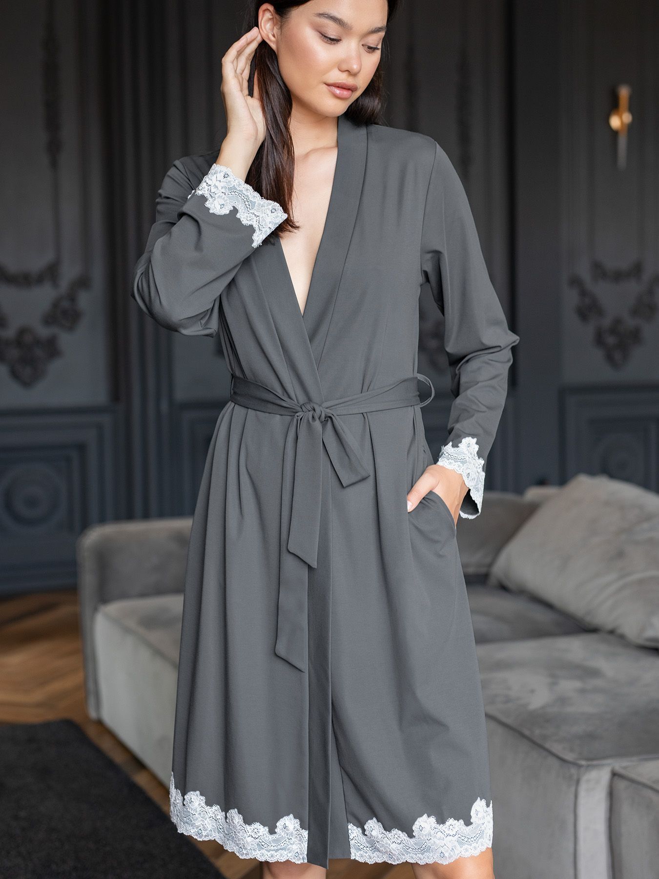 Комбинация вискозы и тенсела обеспечивает мягкость и воздухопроницаемость материала. Ажурная кружевная отделка добавляет элегантности, а пояс с внутренними завязками гарантирует идеальную посадку.