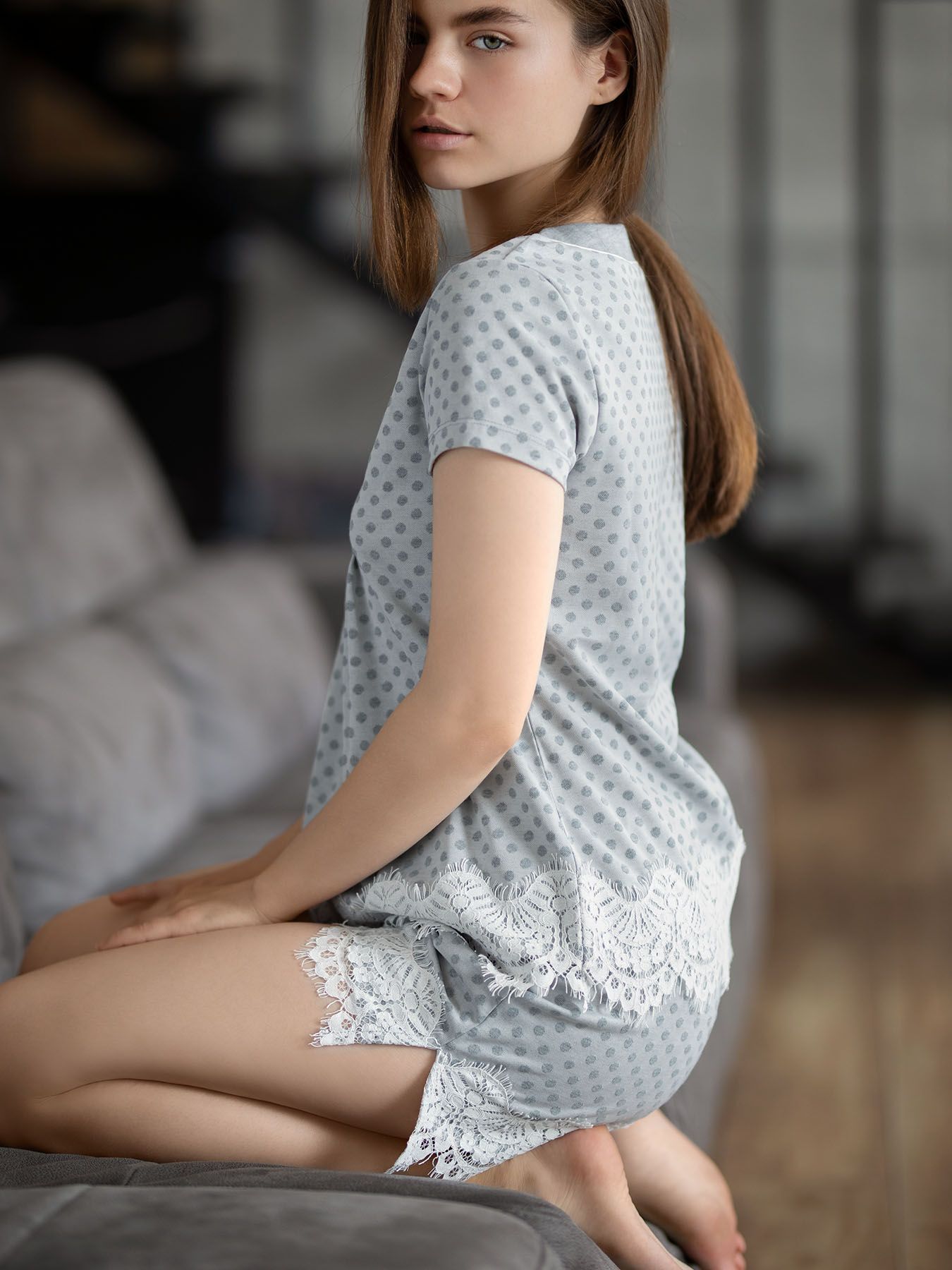 Почему стоит выбрать именно этот комплект? Во-первых, он выполнен из высококачественного материала: 95% полиэстера и 5% спандекса, что обеспечивает долговечность и легкость в уходе. Во-вторых, стильный дизайн с кружевной отделкой и узором в горошек делает его универсальным для любого времени года. Вы сможете носить его как в теплую, так и в прохладную погоду, комбинируя с легкими кардиганами или халатами.