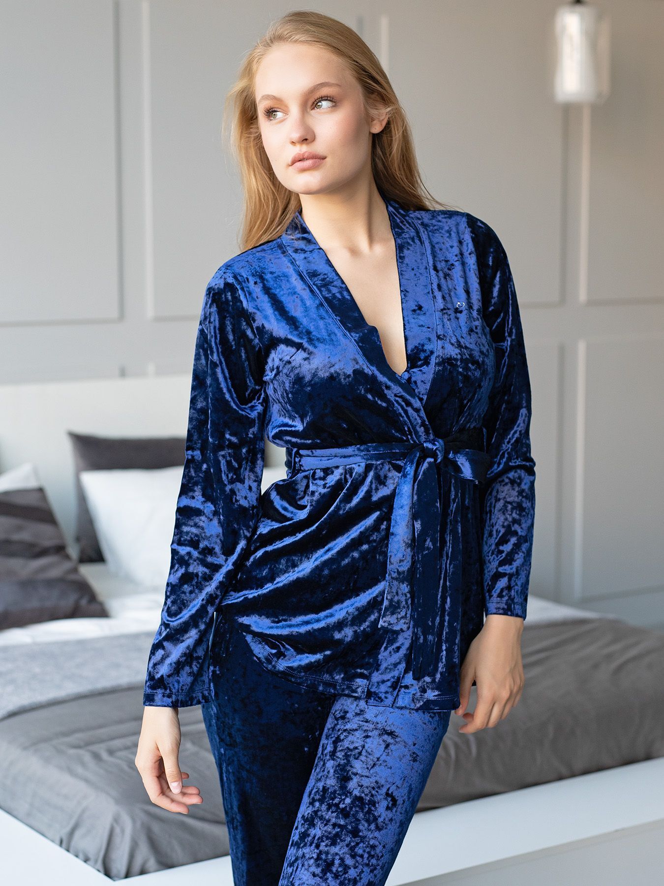 Элегантный домашний костюм из бархатного велюра создан для тех, кто ценит уют и безупречный стиль. Мягкая переливающаяся ткань с деликатным блеском подчеркнёт вашу индивидуальность даже в повседневных моментах.