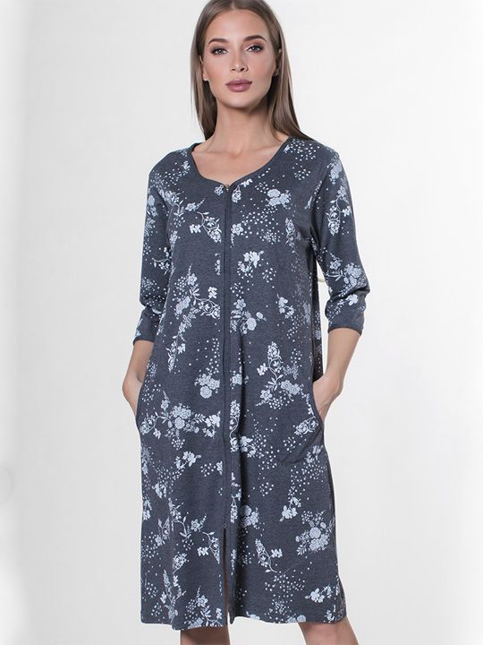 Халат женский из хлопка с удобной молнией и цветочным принтом