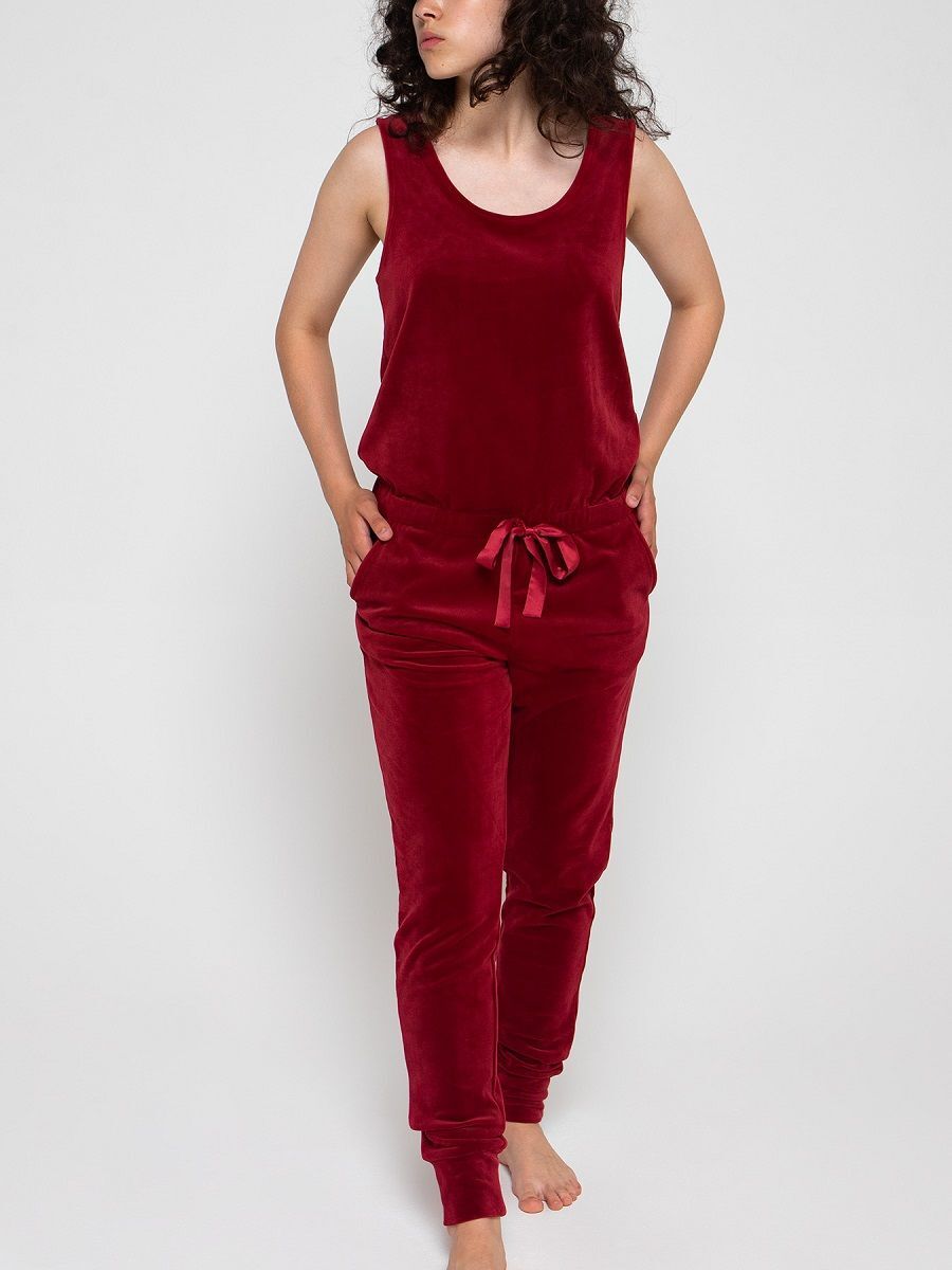 Женский комбинезон из бархатного велюра бордового цвета — идеальный выбор для тех, кто ценит уют и стиль. Мягкая ткань с добавлением спандекса обеспечивает идеальную эластичность, позволяя наслаждаться свободой движений в любой ситуации.