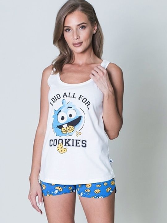 Женский комплект для дома: майка на широких бретелях и шорты, 100% хлопок, размер S, цвет белый с синим
