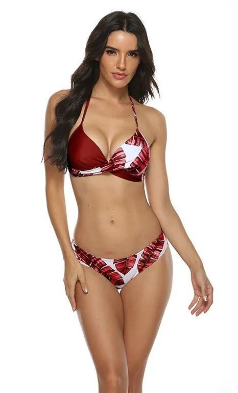 Купальник раздельный "Romeo Rossi", растительный принт, L, красный/белый