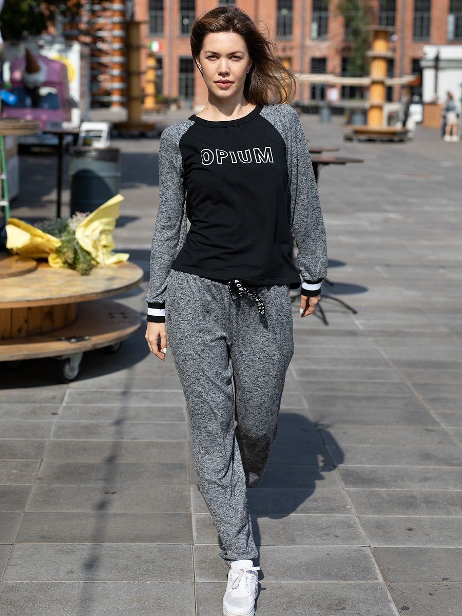 Спортивный костюм женский 'OPIUM' L, серый/черный, свободный силуэт