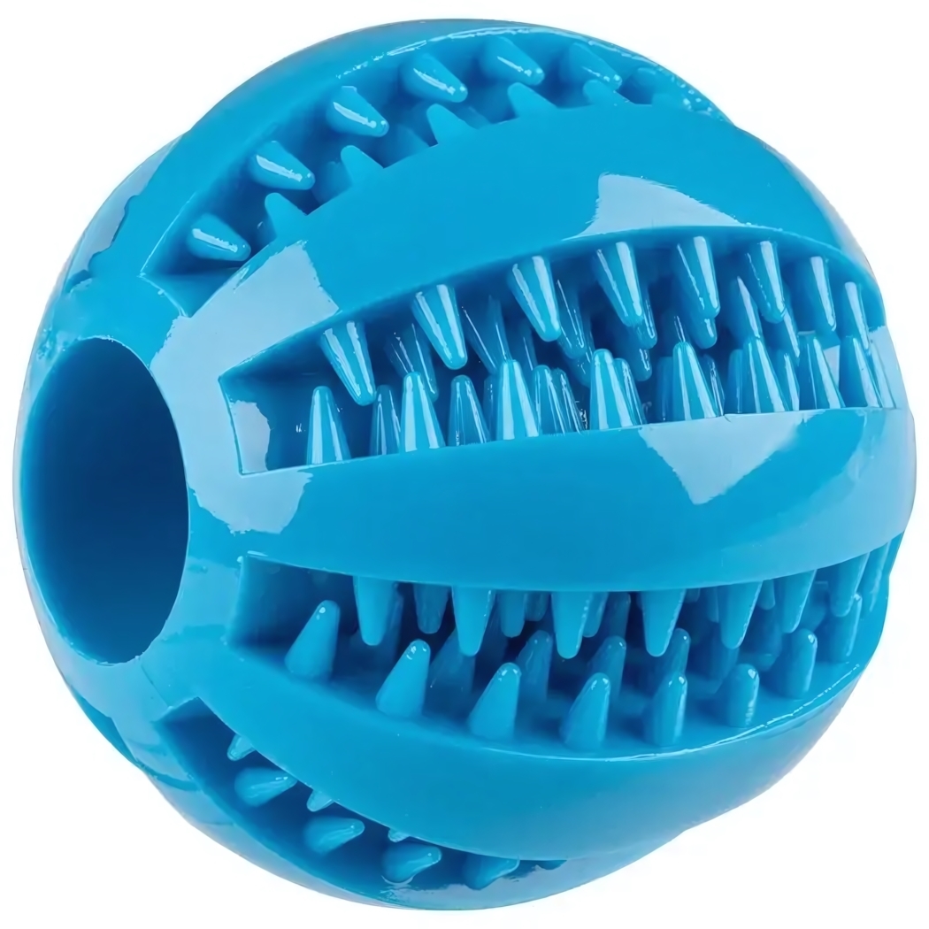 Текстурированный мяч из безопасного пластика сочетает функциональность и долговечность. Ребристая поверхность бережно очищает зубы собаки во время игры, предотвращая образование зубного камня.
