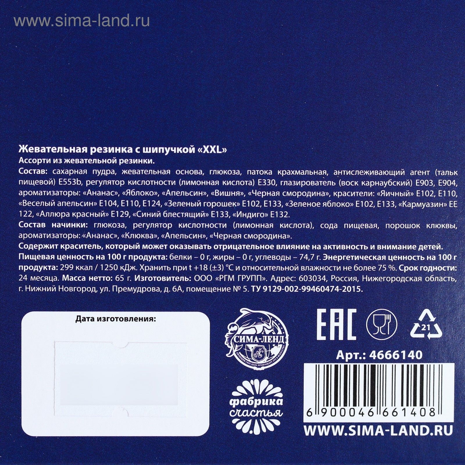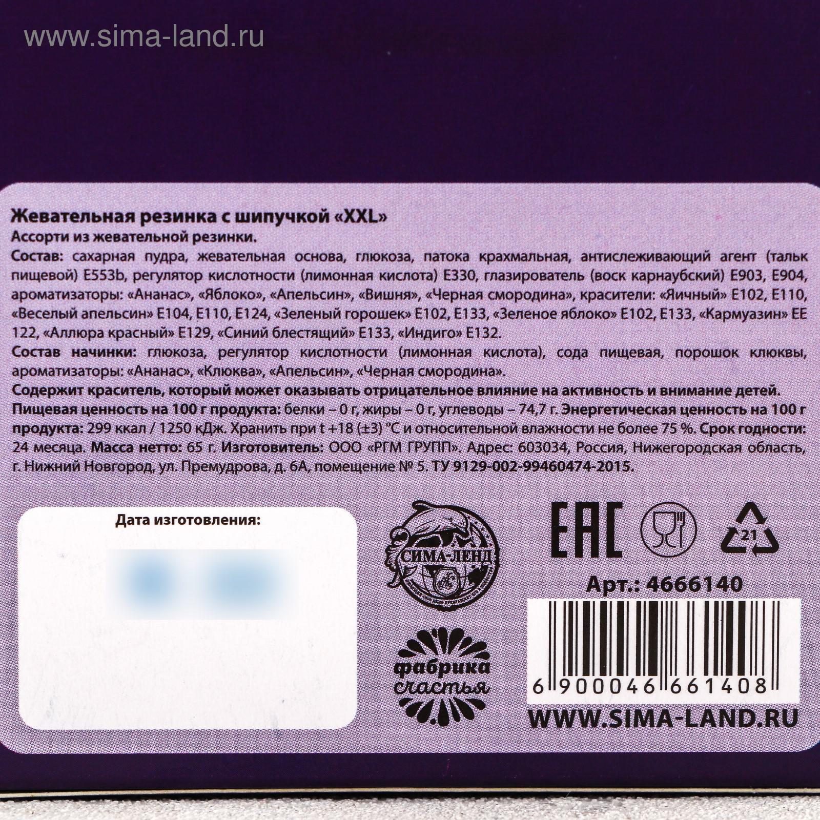 Каждая упаковка содержит 65 г жевательной резинки, что делает её удобной для хранения и транспортировки. Состав включает сахарную пудру, жевательную базу, глюкозу и ароматизаторы, что гарантирует высокое качество и безопасность продукта. Не забывайте, что жевательная резинка предназначена для взрослых, поэтому она станет отличным сувениром для тех, кто ценит оригинальные и необычные подарки.