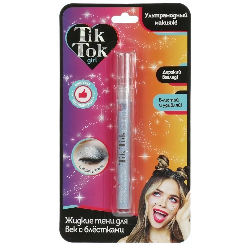 Жидкие тени для век «Tik Tok Girl» с блёстками, синий глиттер, 12 мл, пластиковая туба