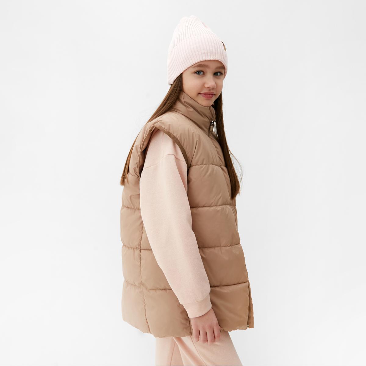 Цвет жилета — бежевый, что делает его универсальным и легко сочетаемым с другими предметами одежды. Размер 128 см подходит для детей среднего возраста, обеспечивая комфорт и свободу движений. Этот жилет станет отличным выбором для школы, прогулок или активного отдыха на природе.