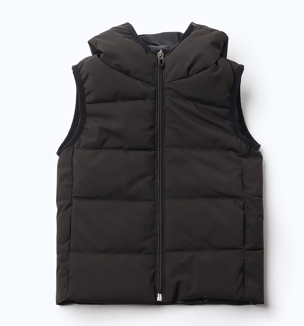 Жилет имеет капюшон и застежку на молнии по всей длине, что обеспечивает дополнительную защиту от ветра и холода. Он идеально подходит для повседневной носки, прогулок на свежем воздухе или активных игр на улице. Благодаря своему универсальному черному цвету, жилет легко комбинируется с различной одеждой, что позволяет создавать стильные образы.