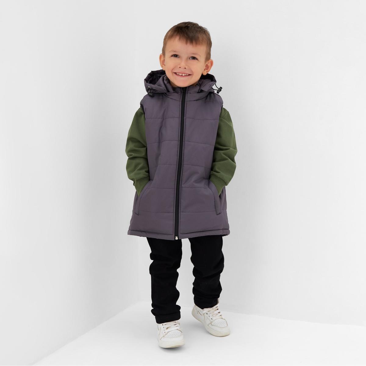 Жилет детский с капюшоном, стеганый, размер 110, серо-фиолетовый, полиэстер 100%, боковые карманы