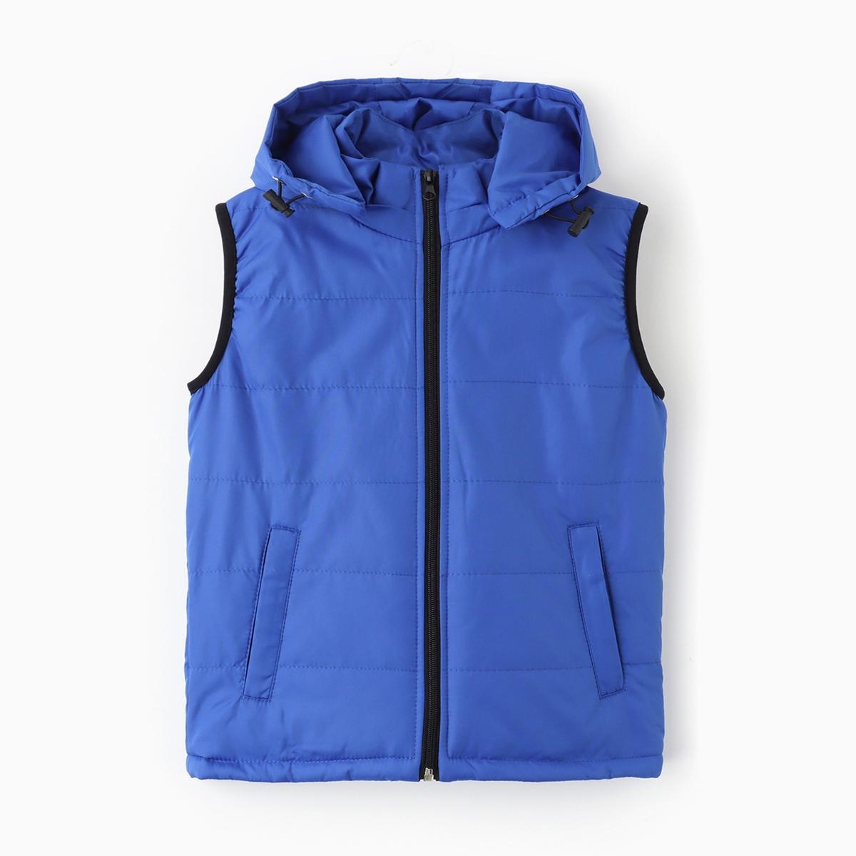 Жилет детский с капюшоном и карманами, размер 98, полиэстер, ярко-синий цвет