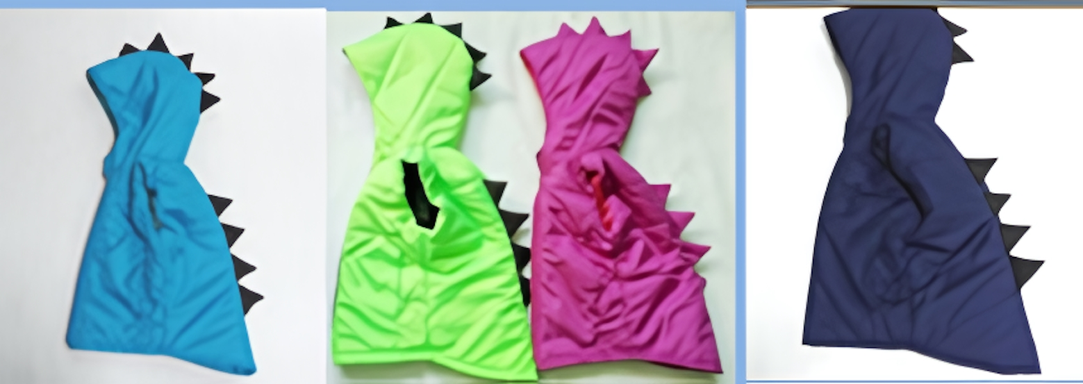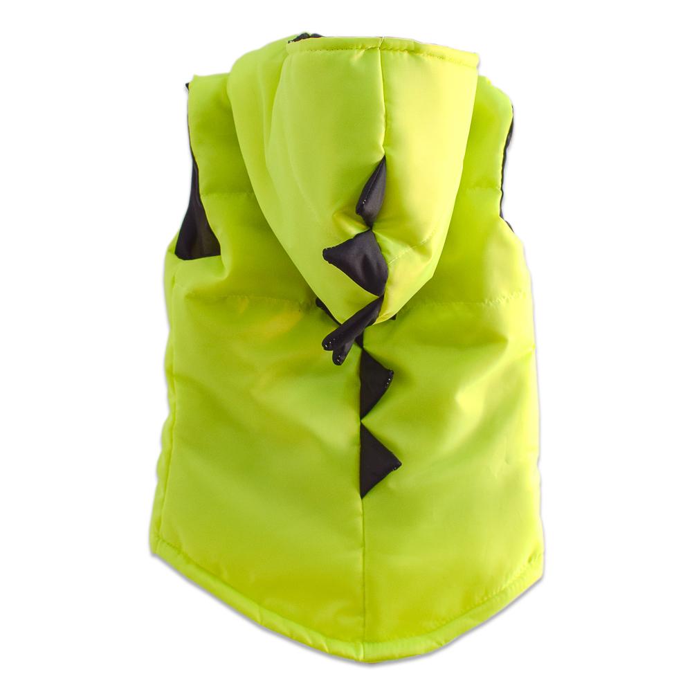 Жилет представлен в четырех ярких расцветках: синей, зеленой, фиолетовой и желтой. Модель особенно понравится детям благодаря оригинальному дизайну с элементами в виде зубцов динозавра.