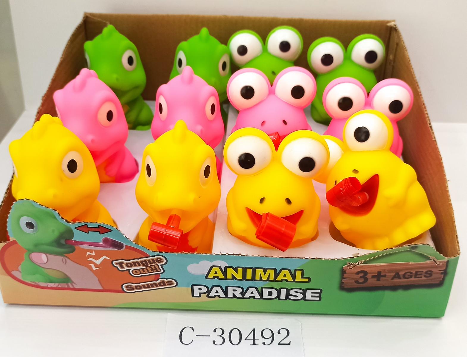 - Нажмите на корпус игрушки — яркий язык моментально выскочит наружу!