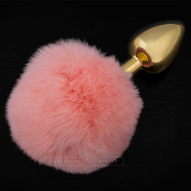 Золотая анальная пробка с розовым хвостиком