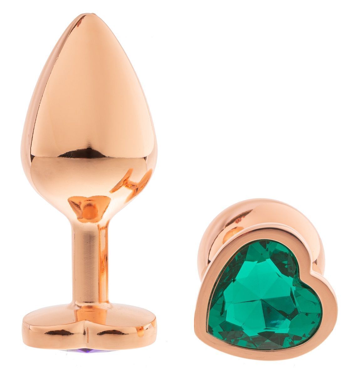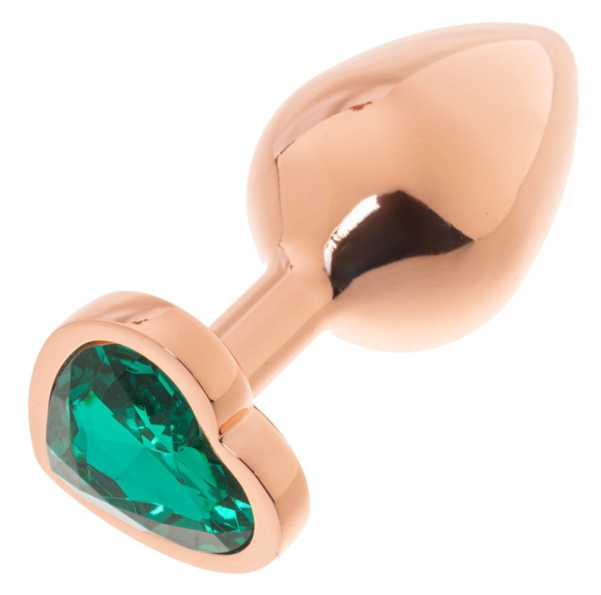 Анальная пробка с кристаллом-сердцем, металл, изумрудный, 7.3х2.8 см, гладкая поверхность