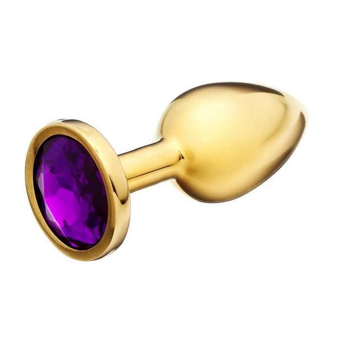 Анальная пробка «Оки-Чпоки» с фиолетовым кристаллом, алюминий с позолотой, 8,5 см, диаметр 3,3 см