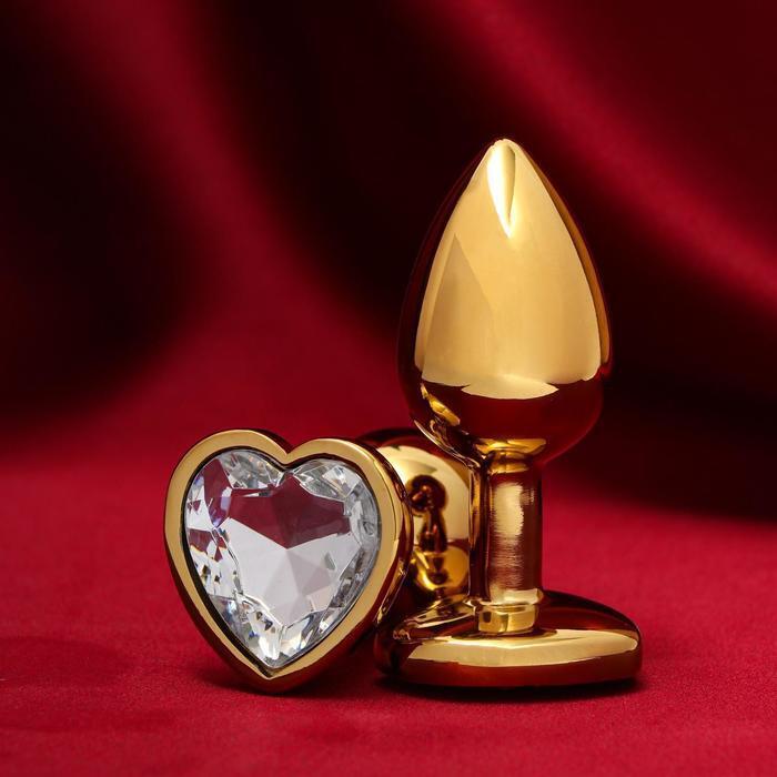Золотистая анальная пробка с кристаллом сердца