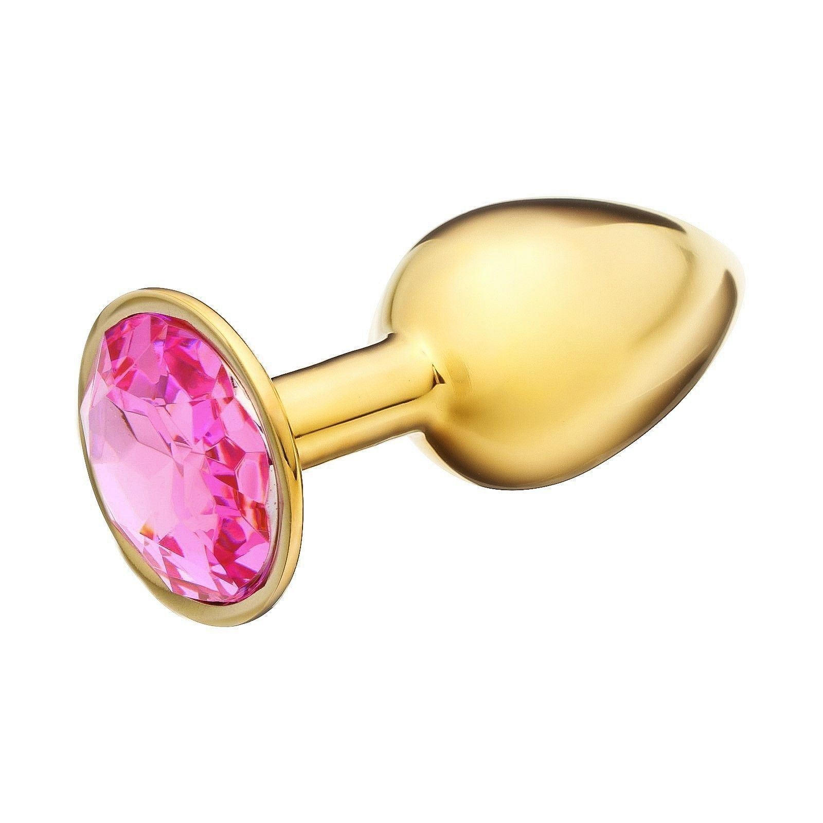 Золотистая анальная пробка с розовым кристаллом