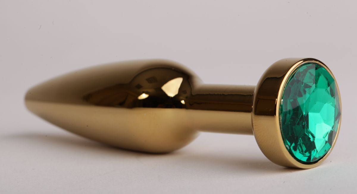 Золотистая анальная пробка с зеленым кристаллом