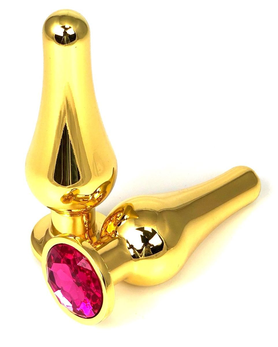 Золотистая анальная пробка с ярко-розовым кристаллом — это сочетание изысканного дизайна и продуманной эргономики для тех, кто ценит комфорт и эстетику в интимных играх. Её удлинённая форма и гладкая металлическая поверхность обеспечивают плавное введение и надёжную фиксацию, открывая новые грани ощущений.