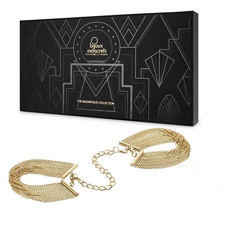 Позвольте золотистым переплетениям цепочек стать проводником в мир новых ощущений и доверительной близости. Браслеты "MAGNIFIQUE" – это больше, чем аксессуар, это ключ к совместному исследованию чувственности.