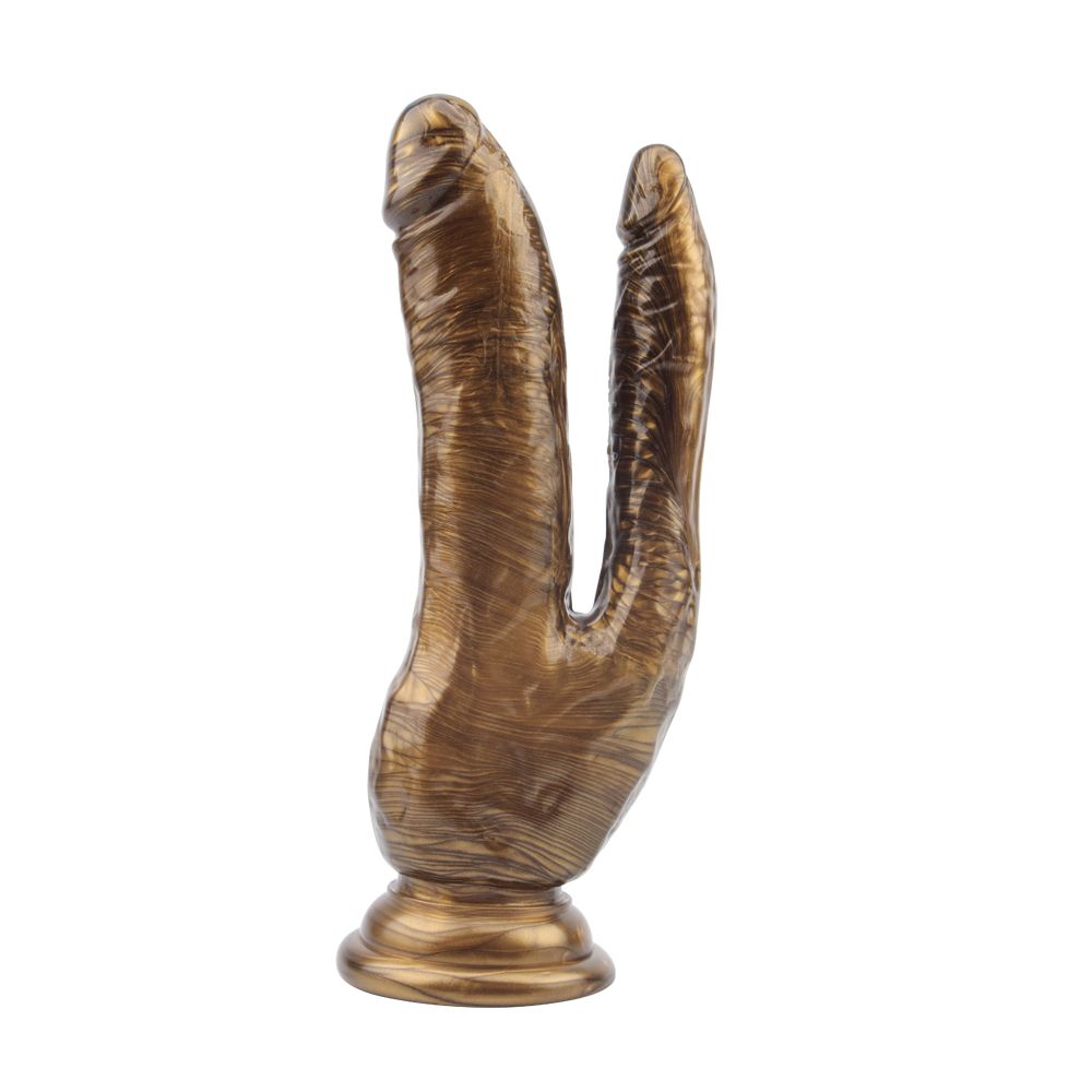Этот анально-вагинальный фаллоимитатор создан для тех, кто ценит эксперименты и хочет расширить границы своих ощущений. Золотистый мраморный дизайн придает изделию эстетичный и стильный вид, а реалистичная анатомическая форма с детальной проработкой венозного рельефа обеспечивает максимально естественные тактильные впечатления.