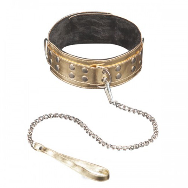 Золотистый ошейник с цепью-поводком