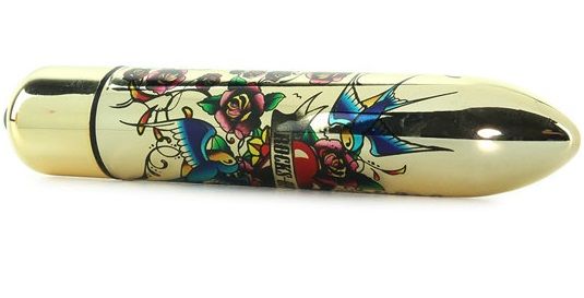 - Уникальный дизайн: Эксклюзивное художественное оформление в стиле олдскул тату с изображением сердца, роз и птиц делает этот вибратор настоящим произведением эротического искусства.