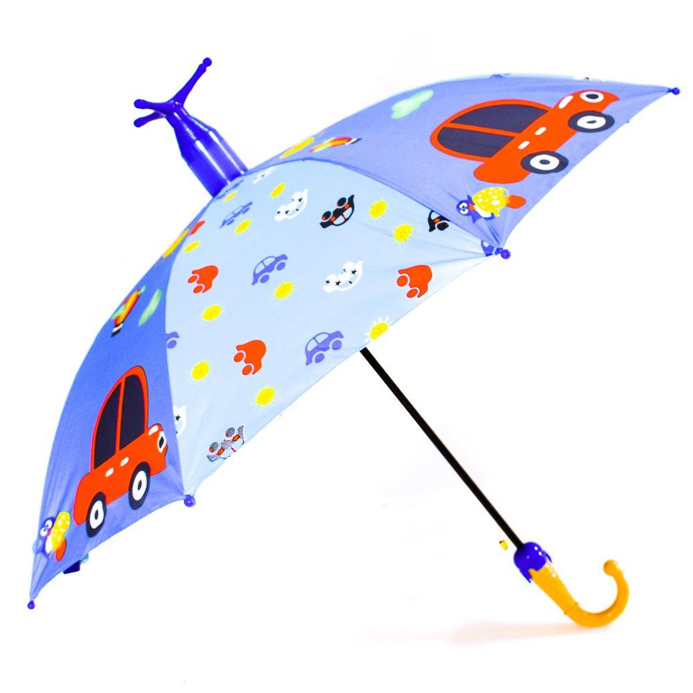 Детский зонт трость 50 см, голубой с машинками, с подставкой и чехлом – защита от дождя и солнца