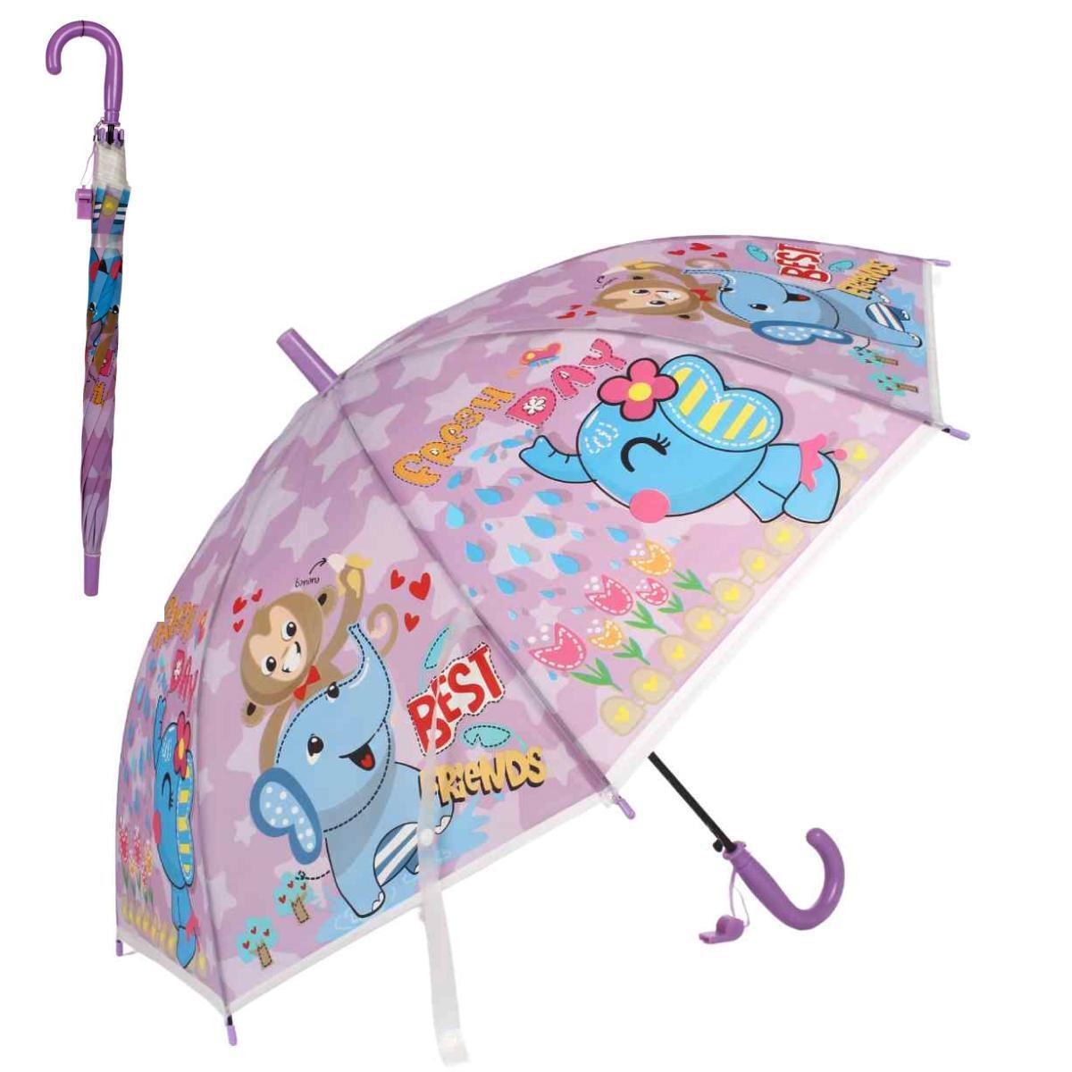 Зонт детский 66см, диаметр 84см, с рисунком животных и свистком, полиэтилен