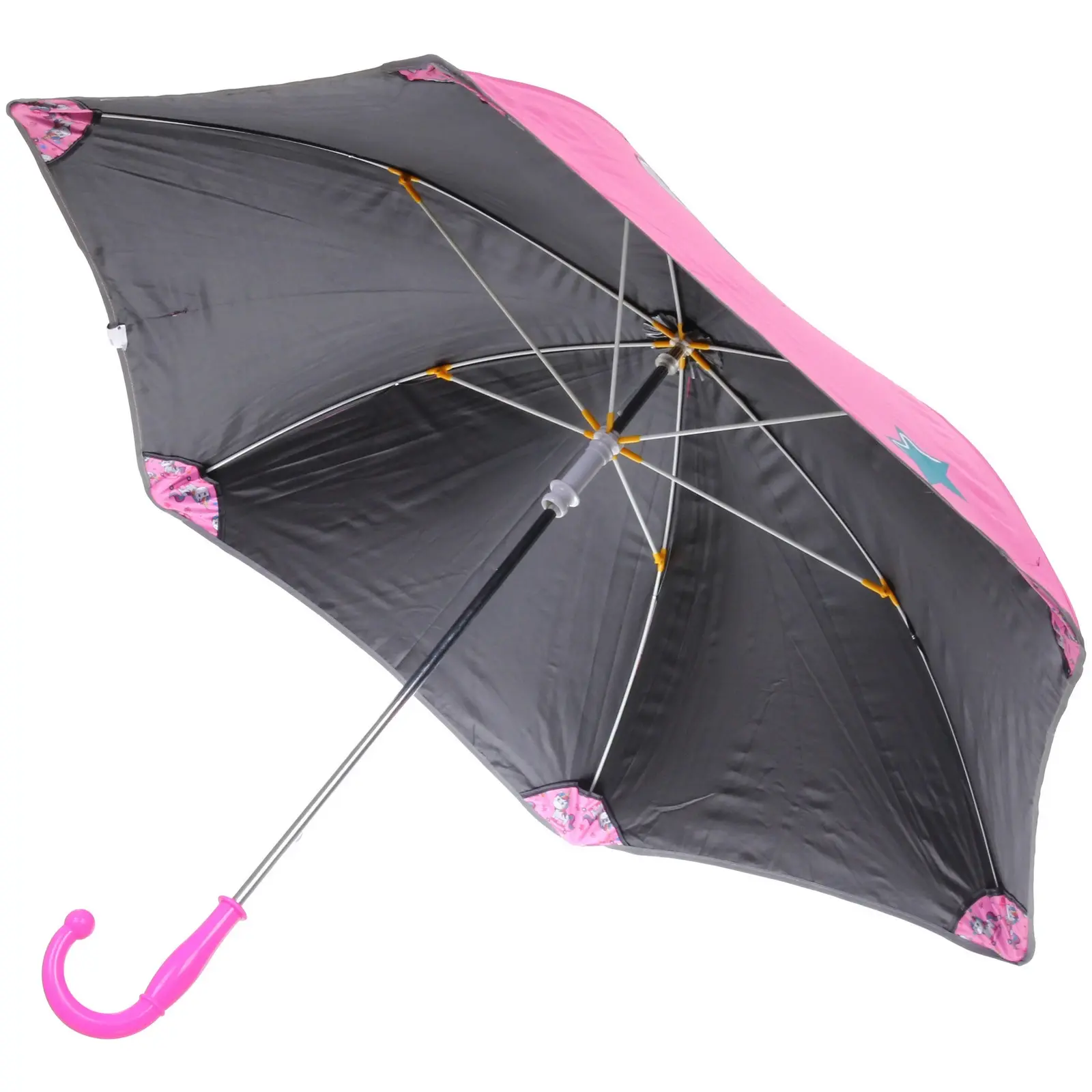 Плотный виниловый купол диаметром 90 см надёжно защищает от дождя, а шестигранная форма увеличивает устойчивость к ветру. Механизм с автоматическим открыванием работает плавно — ребёнок справится одним нажатием.