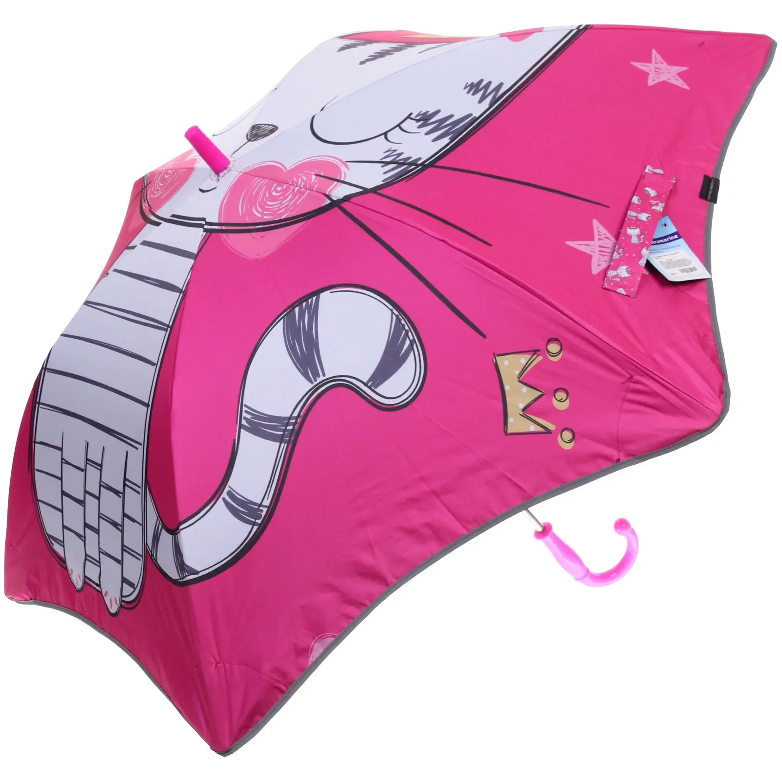 Детский зонт 'KidsZontik' создан для безопасных прогулок в любую погоду. Его яркий дизайн с очаровательной кошечкой и светоотражающими элементами не только радует глаз, но и делает вашего ребенка заметным на дороге.