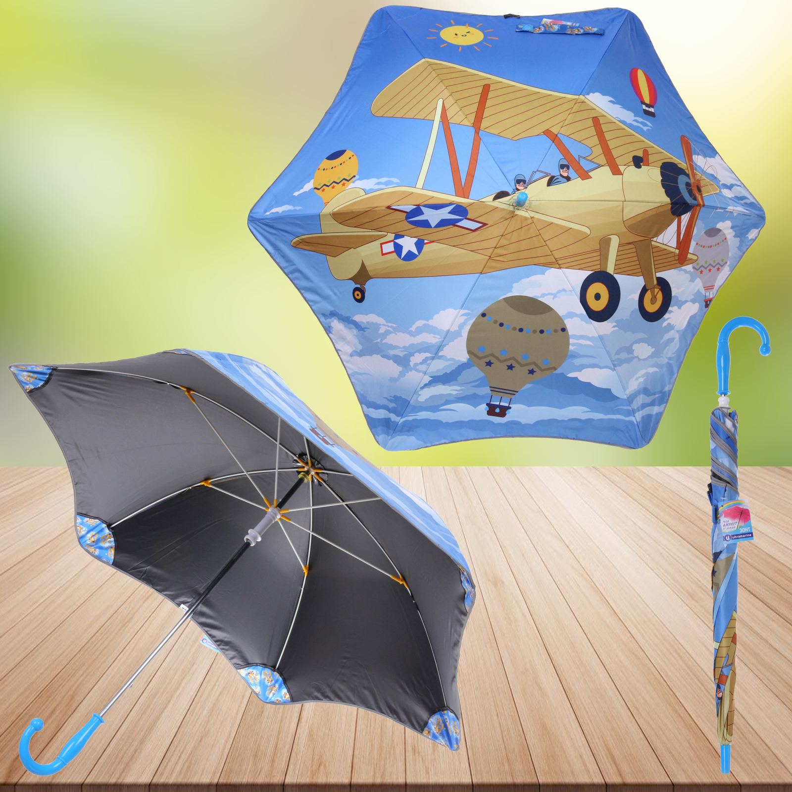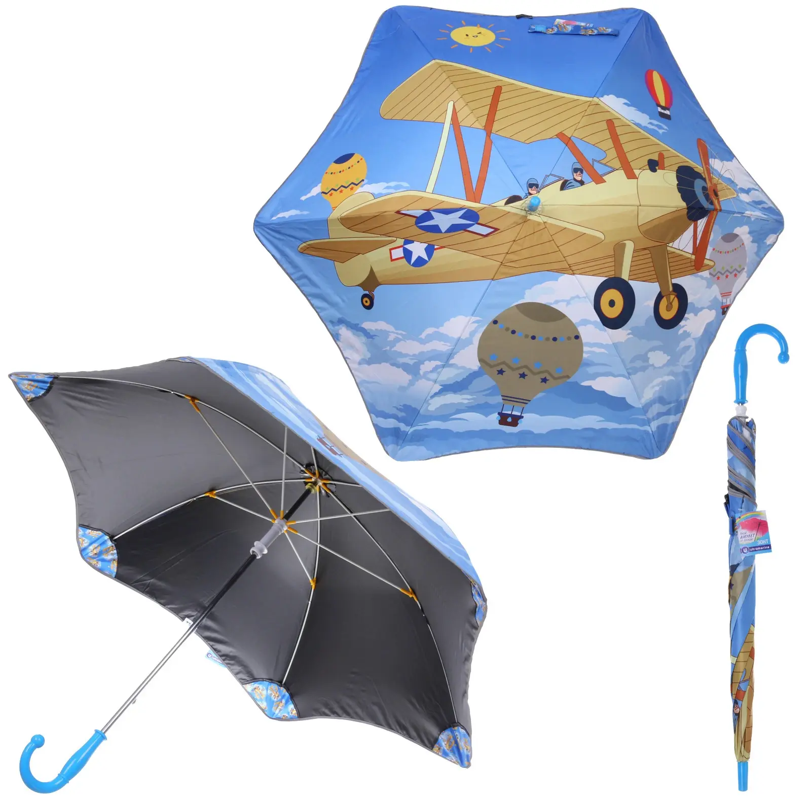 Зонт детский 'KidsZontik', Самолет, светоотражатели, винил, 65см, d-90см