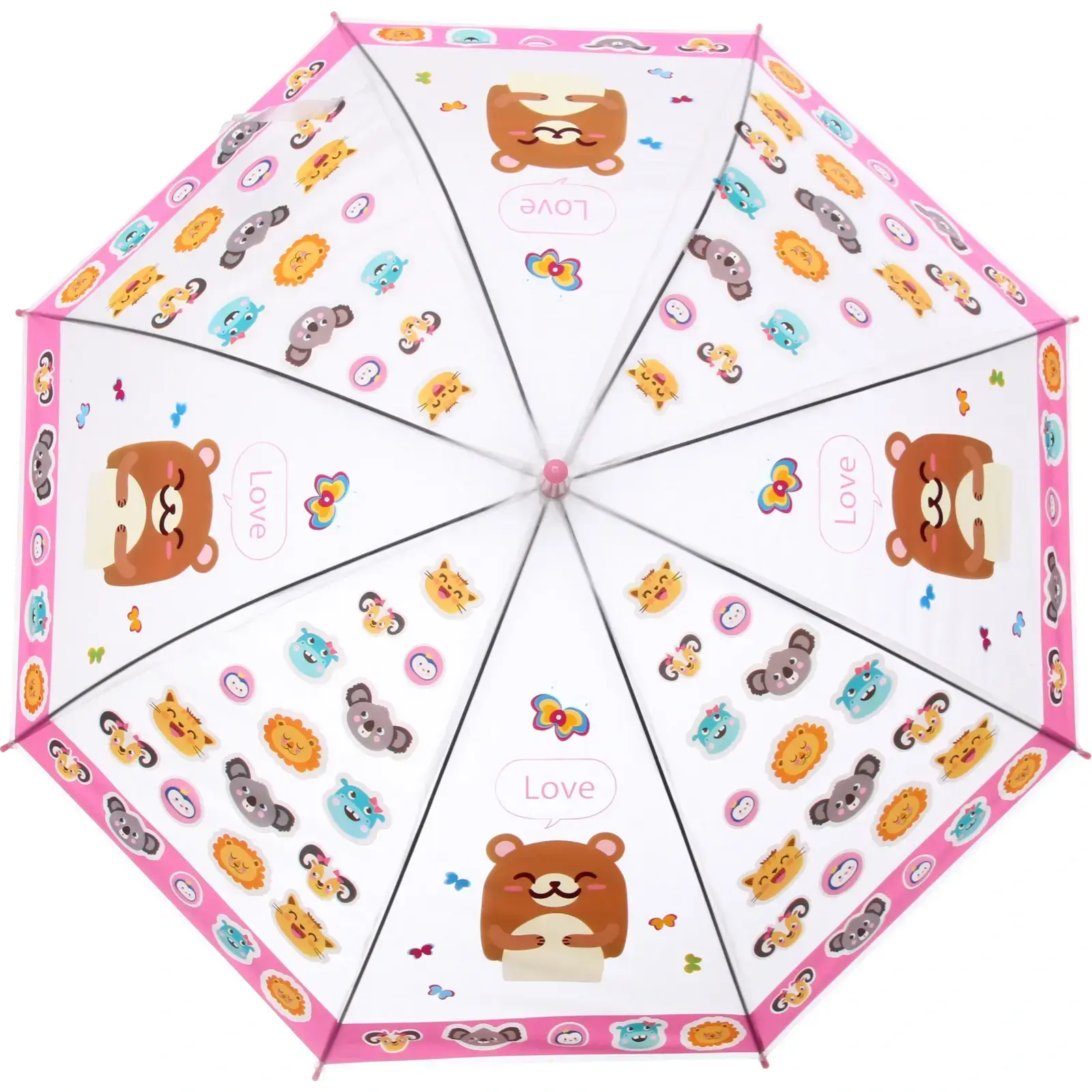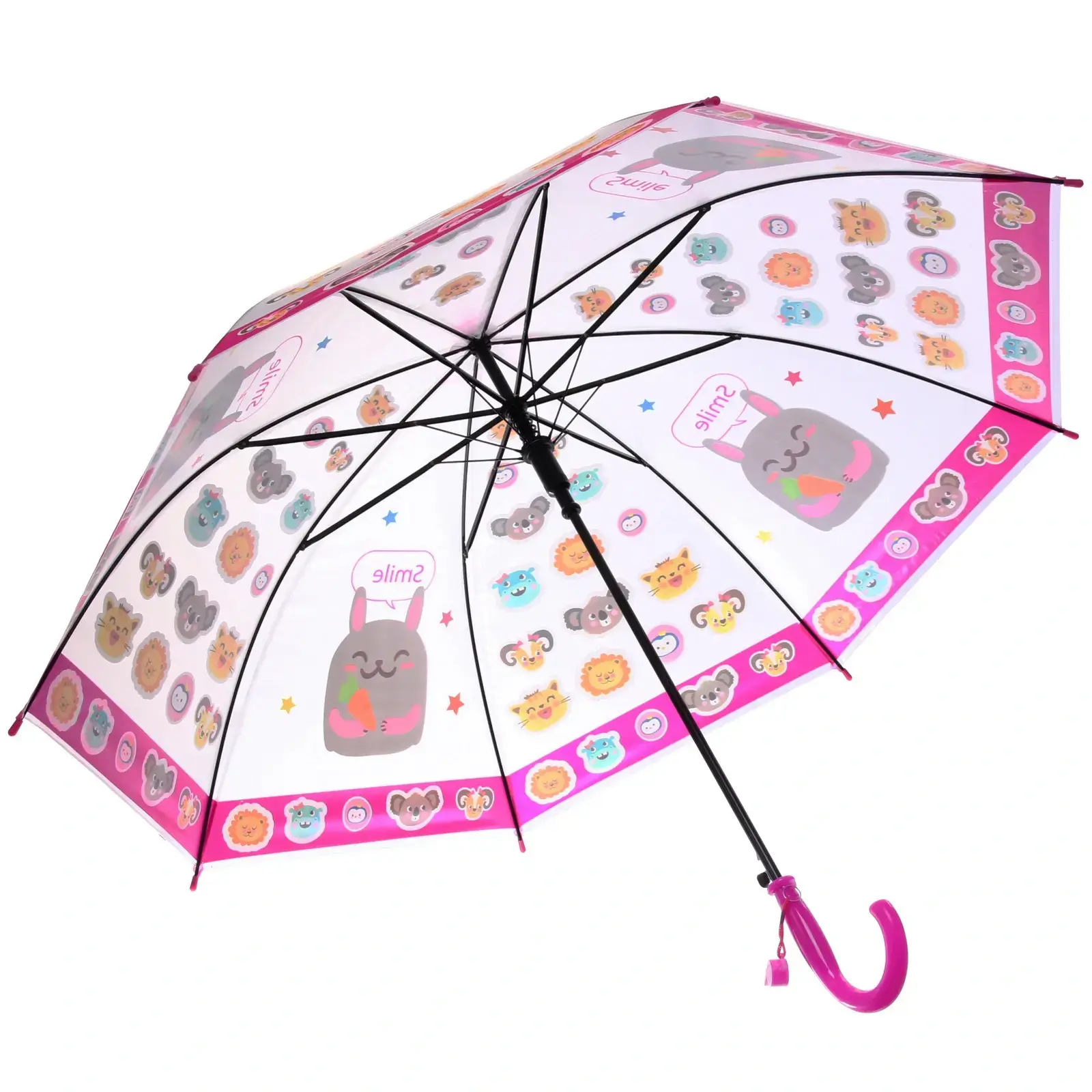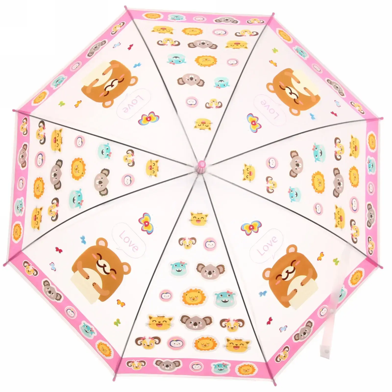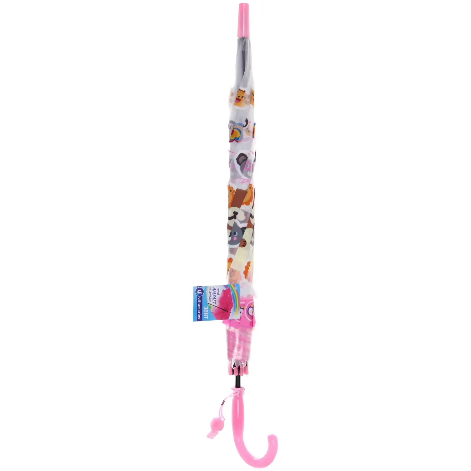 Основной цвет зонта - розовый, с множеством ярких изображений животных, что делает его идеальным для маленьких любителей приключений. Ручка зонта имеет изогнутую форму, что обеспечивает удобный захват. Этот зонт станет отличным подарком для вашего ребенка и поможет ему оставаться сухим и веселым в любую погоду!
