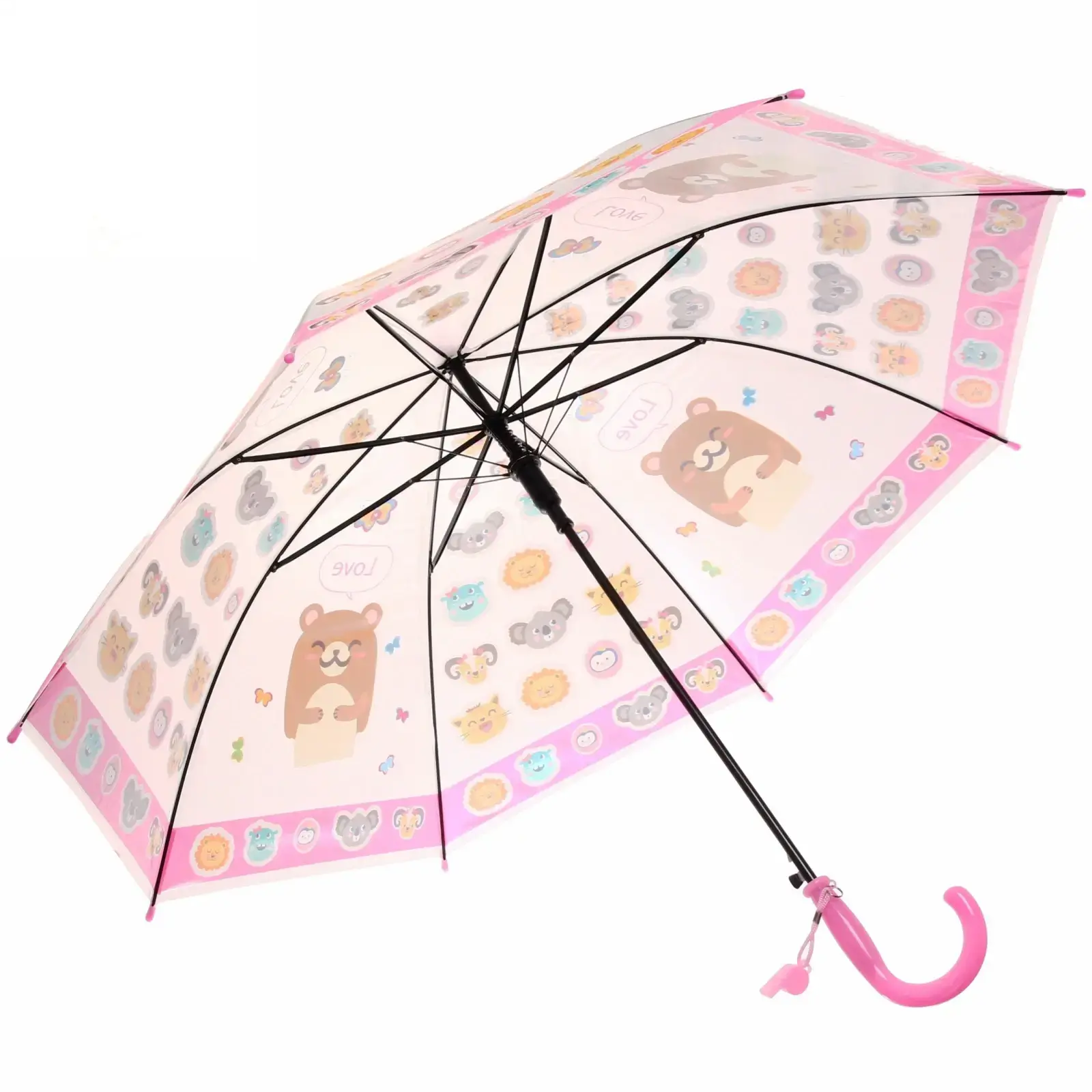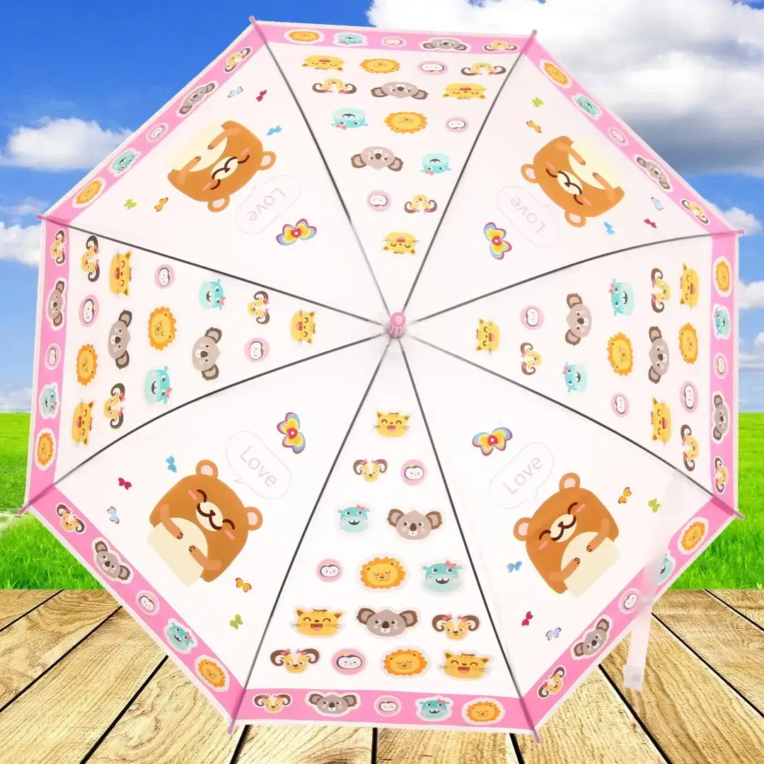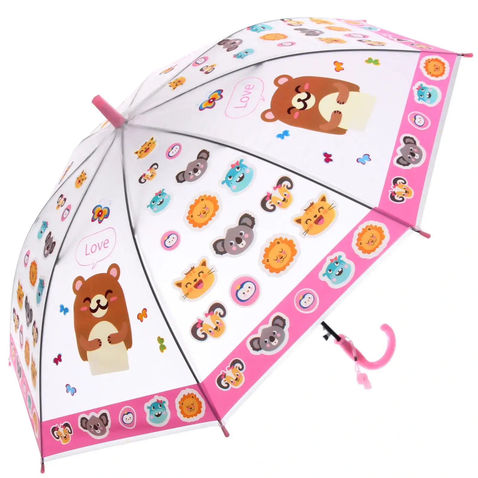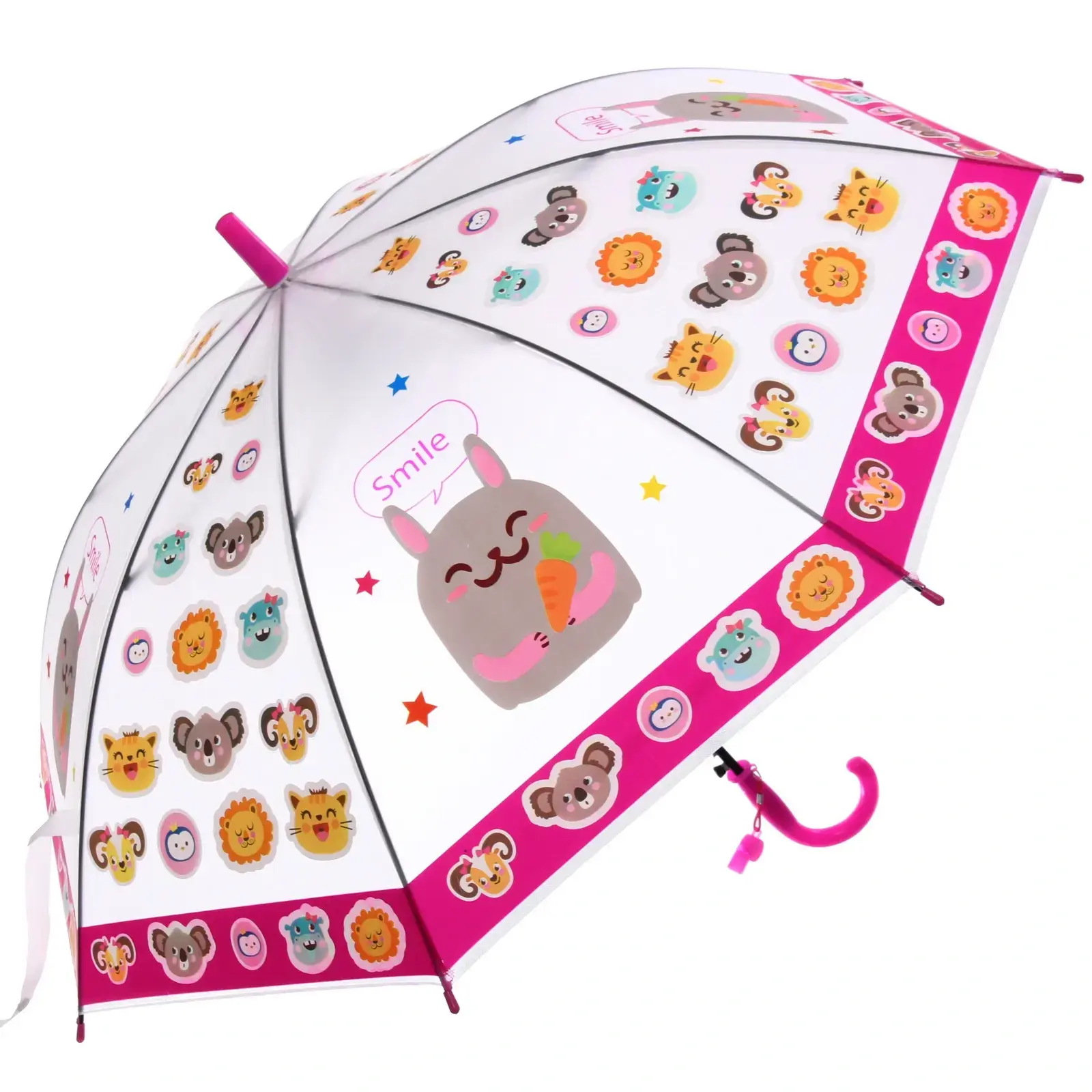 Основной цвет зонта - розовый, с множеством ярких изображений животных, что делает его идеальным для маленьких любителей приключений. Ручка зонта имеет изогнутую форму, что обеспечивает удобный захват. Этот зонт станет отличным подарком для вашего ребенка и поможет ему оставаться сухим и веселым в любую погоду!