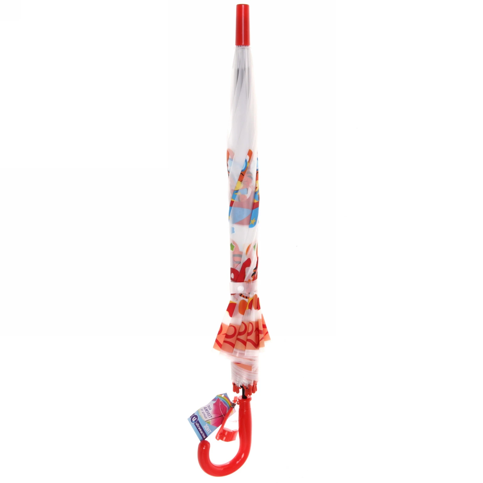 Изготовлен из качественных материалов: водонепроницаемый ПВХ-купол, металлические спицы и пластиковая ручка. Зонт представлен в различных цветовых решениях с весёлыми рисунками, которые непременно понравятся вашему ребёнку.