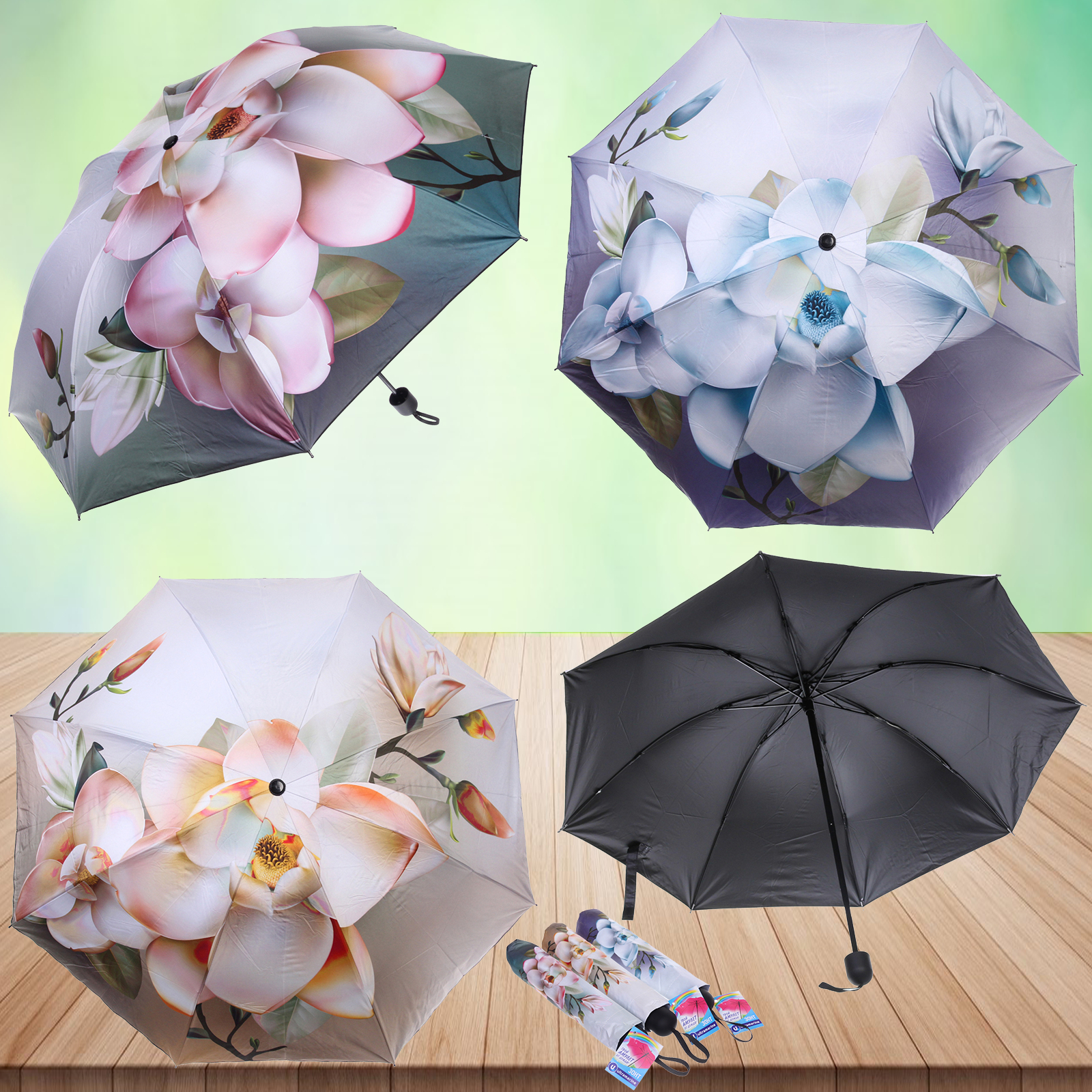 Важно: Разноцветный принт из 4 дизайнов, отгружается один зонт с случайно выбранным рисунком.