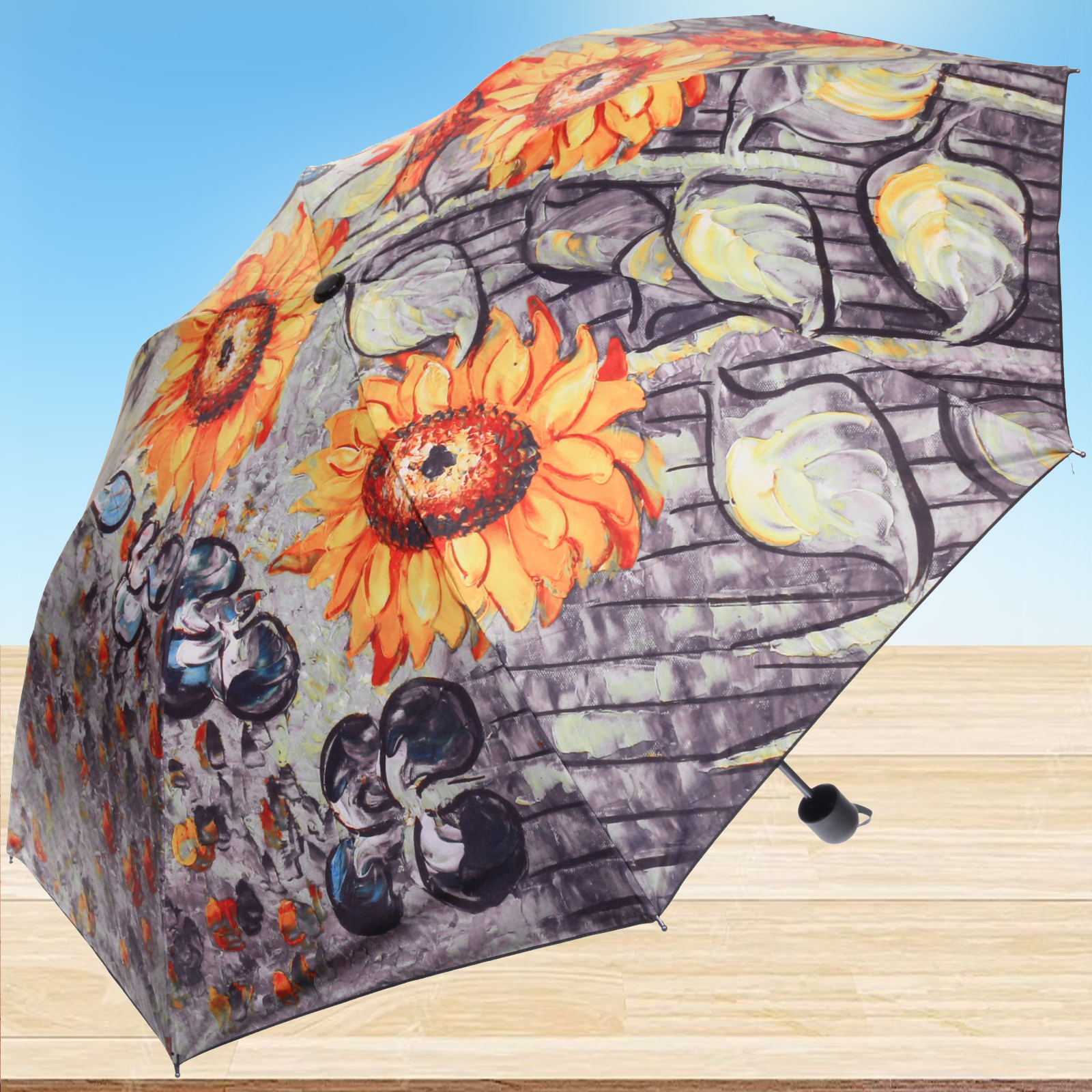 Зонт механический 'BESTzontik - muskat', ветроустойчивый, цветы подсолнухов, длина 25см, d-110см