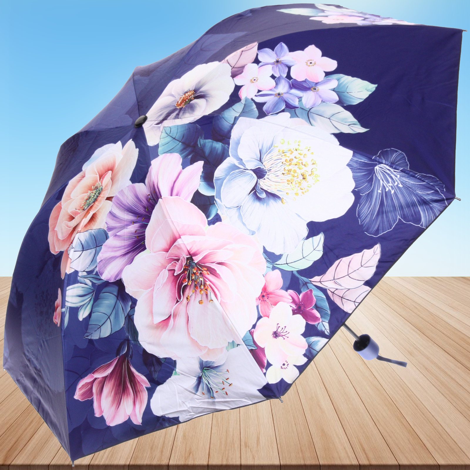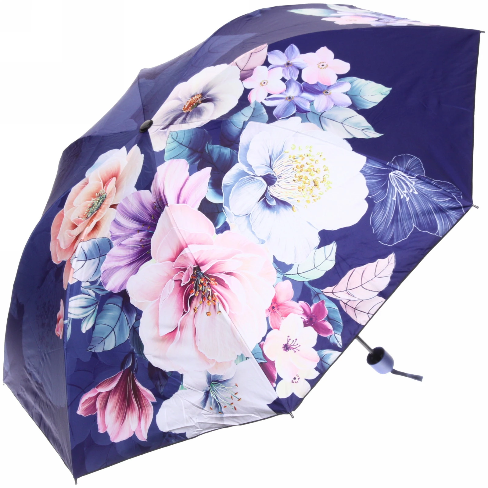 Тёмно-сиреневый фон купола украшен объёмным цветочным принтом. Роскошные розовые, лиловые и белые бутоны создают настроение даже в дождливый день. Матовая поверхность ручки дополняет стильный образ, делая аксессуар завершающим штрихом вашего образа.